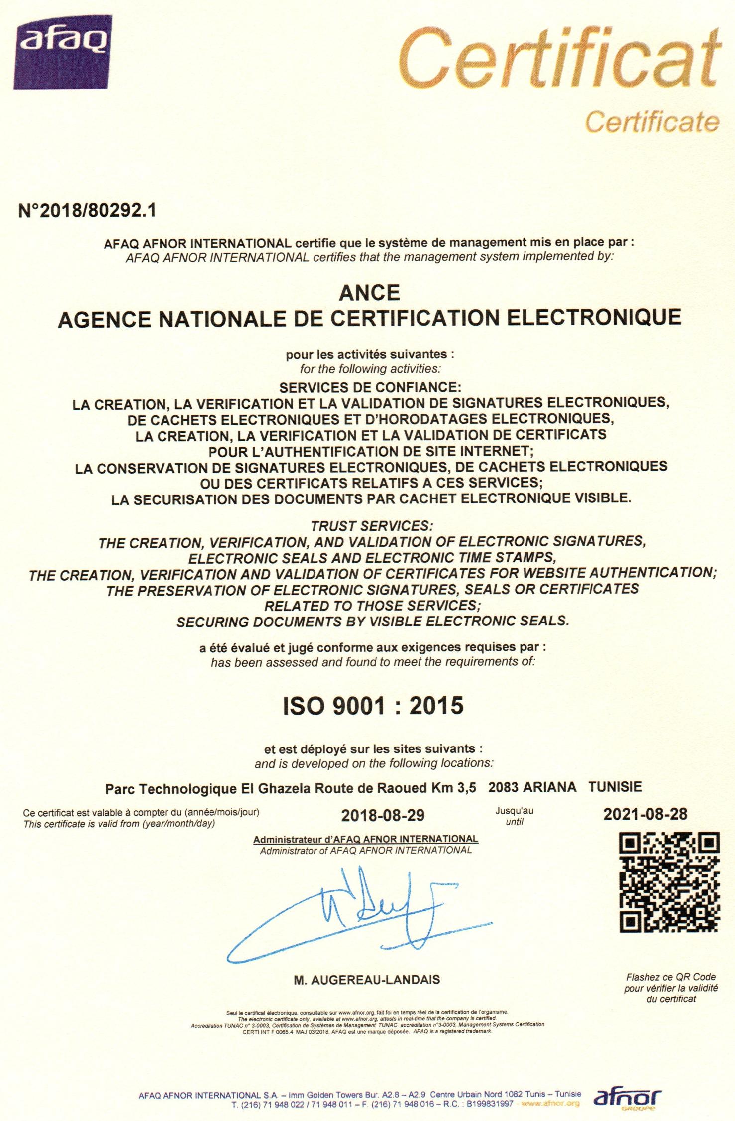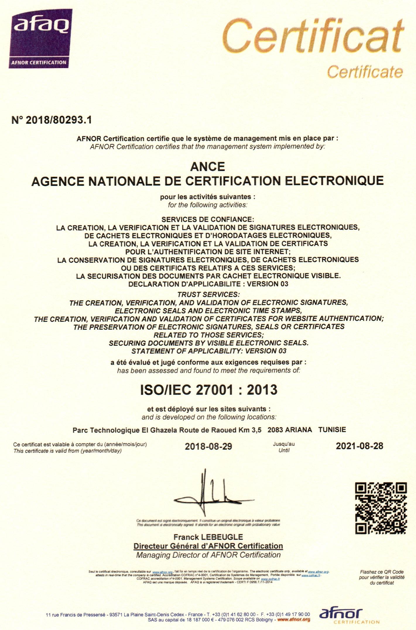 Nos Certifications ISO :