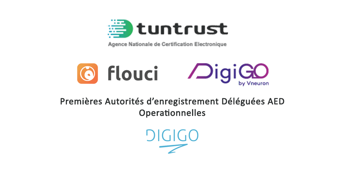 L’Agence Nationale de la Certification Electronique TunTrust annonce la mise en service de la distribution du certificat électronique DigiGO par ses premières Autorités d’Enregistrement Déléguées (AED) opérationnelles : Kaoun et Vneuron. Leurs services sont baptisés respectivement « Flouci » et « DigiGO by Vneuron ».